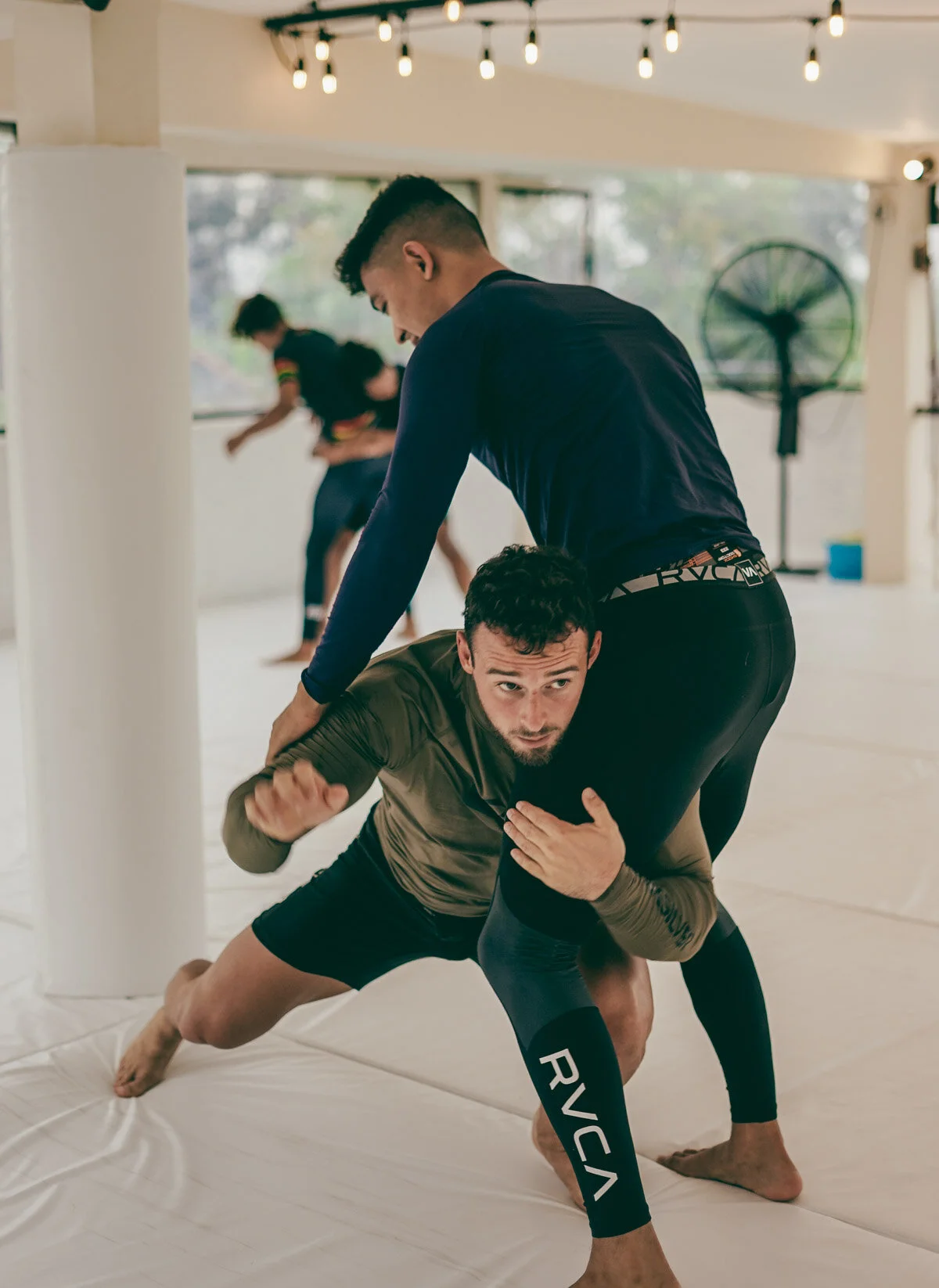 Gi and No-Gi are the two forms of Brazilian Jiu-Jitsu. Gi Jiu-Jitsu is grappling with the use of a traditional Gi, which allows you to grab the clothing of your opponent. No-Gi is grappling without the traditional uniform instead, you wear shorts and a rash guard. In No-Gi we often focus heavily on techniques from Freestyle Wrestling. The takedowns and throws from wrestling transition smoothly from our techniques from Brazilian Jiu-Jitsu. No-Gi Grappling is faster paced and more explosive than traditional Brazilian Jiu-Jitsu.